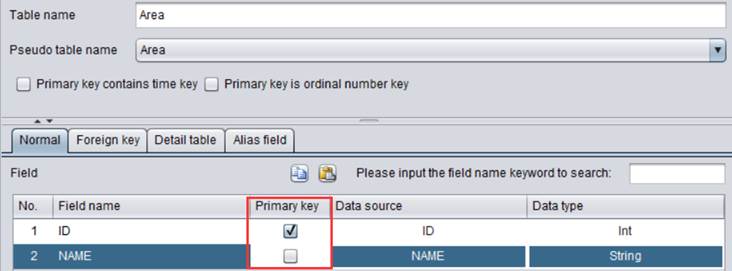 主键用于唯一标识记录的字段,主键从虚表使用的组表文件中继承或从集文件定义虚表时的主键设置中继承。