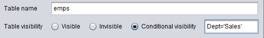 如将emps表的表可视属性设为条件可见: