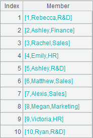 成员数列,其成员值大于0且小于等于A的长度n。若P为空列,则返回空列。 |
