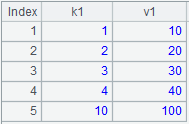 =create(k1,v1).record([1,10,2,20,3,30,4,40,10,100]) |
