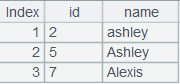 ["1,Rebecca","2,ashley","3,Rachel","4,Emily","5,Ashley","6,Matthew", "7,Alexis","8,Megan","9,Victoria","10,Ryan"] |