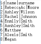 =file("D:/Dep2.txt").cursor@tdn(id:int,name,surname;,"|") |
