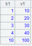 =create(k1,v1).record([1,10,2,20,3,30,4,40,10,100]) |