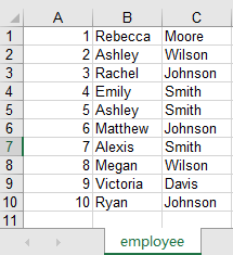 =file("e1.xls").xlsexport(A1;"employee";"123") |