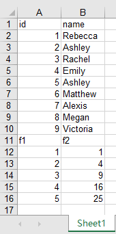 =file("e2.xls").xlsexport@t(A1,EID:id,#2:name) |