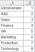=file("D://EMP1.txt").import@s(;1:2) |