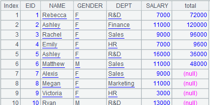 =A4.join(EID,A9:EMPLOYEEID, BONUS*12:total) |