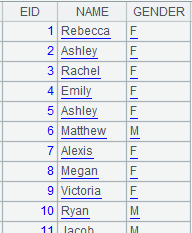 =connect("demo").cursor("select EID,NAME,GENDER,SALARY from employee").sortx(EID ) |
