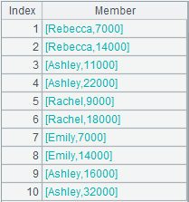 X为序列时,对A与X的成员逐一进行计算,将A1的成员作为字段a的值,[10,20]的成员作为字段b的值,第3列为a*b的结果值, Fi缺省直接参数xi用作为字段名: