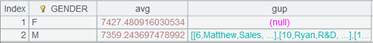 根据GENDER字段对A2序表分组,返回结果如下: