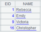 =demo.query(A1,"select EID,NAME from EMPLOYEE where EID=?",~*~) |
