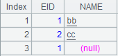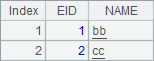 =create(EID,NAME).record([10,"bb",11,"cc"]) |