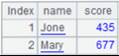 [{name:Jone,score:435},{name:Mary,score:677}] |