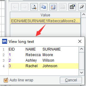 使用@w选项,读出时,以格值的序列的序列形式返回: