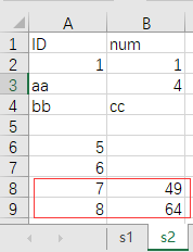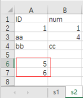 填入字符串,在s2页的A3单元格填入字符串aa,相邻行即A4单元格填入字符串bb,然后在A4相邻列即B4单元格中填入字符串cc。 |