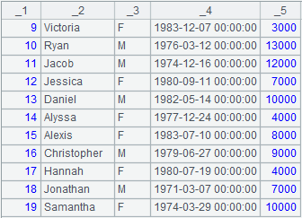 取出名为employee的sheet页中的第10行到第20行的内容: