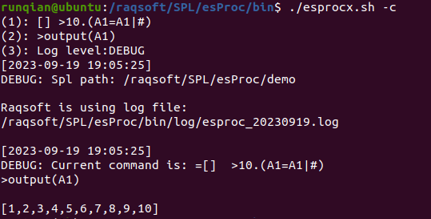 如果esprocx.bat文件所在路径被设入了操作系统的path列表,可以直接运行esprocx,而不必在安装目录的esProc\bin路径下。但是,调用的脚本文件必须指明全路径,或者要位于当前路径中,如: