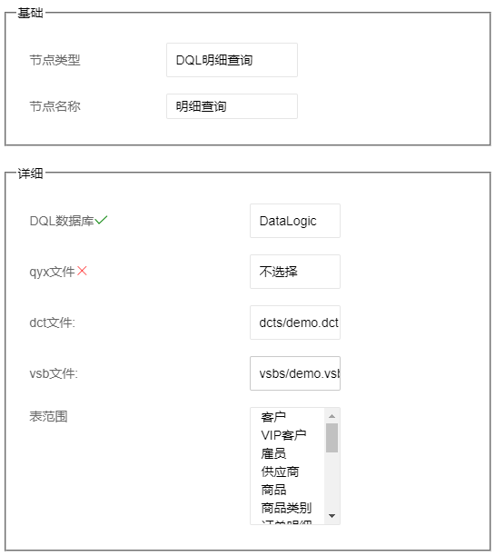DQL明细查询是指润乾报表WEB应用中内置的查询控件。本节仅介绍在报表中心如何添加明细查询类型的节点。