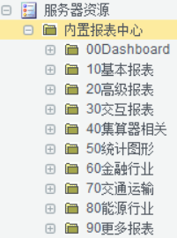 登录完成后,在左侧应用资源处可以看到名称为内置报表中心的服务器资源