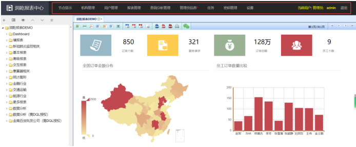 本应用已作为示例集成到了润乾报表中心DEMO中,使用超级管理员登录即可看到。