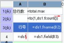 B3:=ds1.fname(B2) 根据B2里的列序号得到字段名。