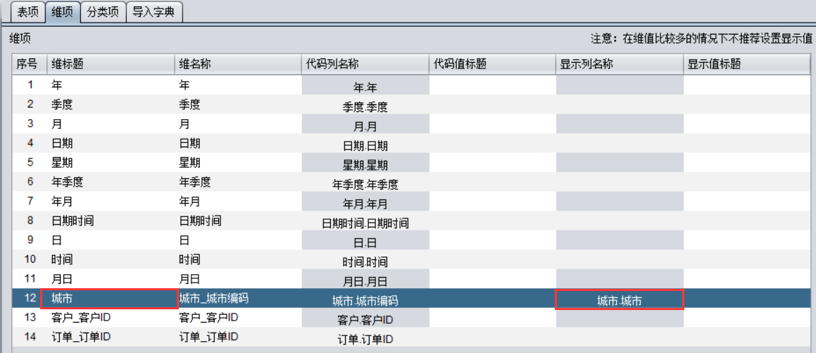 在字典文件里设置城市维的显示列名称为城市表的城市名称: