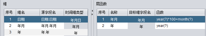 3) 目标维可分别通过多个源维进行换算。比如“年”维,可能是从日聚集到年,也可能从年月聚集到年,因此,对于“年”维,就要定义两个层间计算式,分别从“日期”表的日期和“年月”表的年月计算而来。