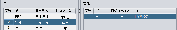 ,表示“年”维年字段的值可以由“年月”维的年月字段通过表达式int(?/100)换算而来。