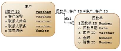 客户ID为客户表中的主键字段,回款单中客户ID和回款单ID为主键字段,回款单的客户ID外键指向客户表的客户ID。