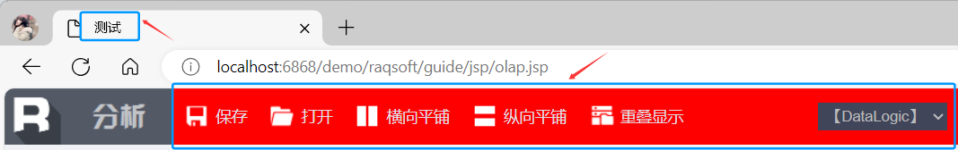 将示例代码添加到[安装根目录]\report\web\webapps\demo\raqsoft\guide\jsp\olap.jsp中,刷新页面后点击红框中的内容即可,效果如下图: