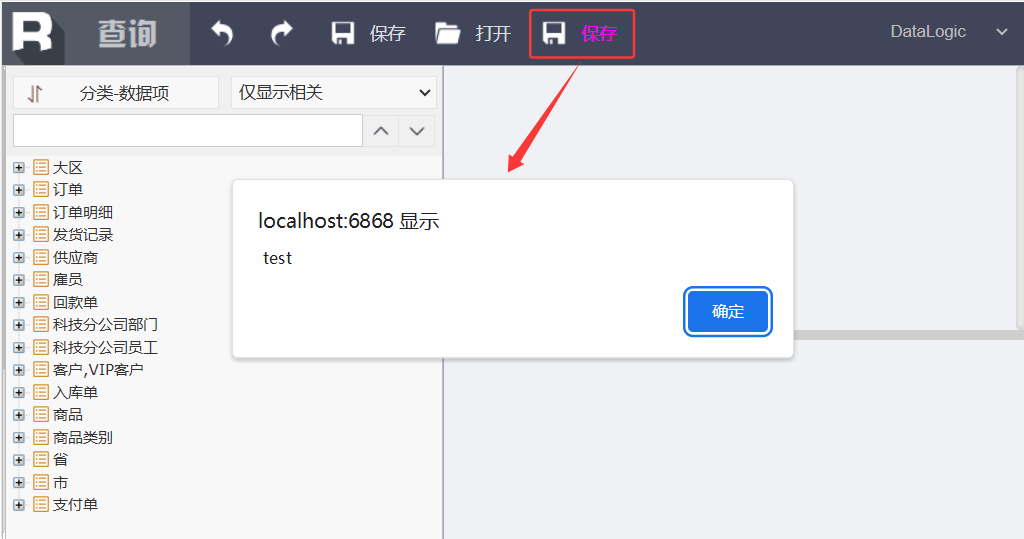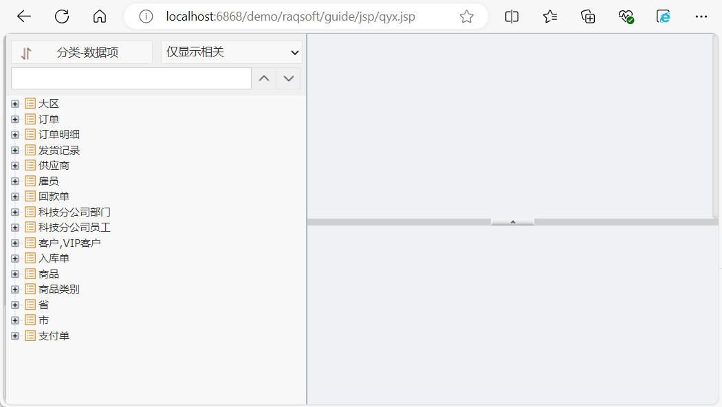 将上述示例代码添加到[安装根目录]\report\web\webapps\demo\raqsoft\guide\jsp目录下的qyx.jsp中,刷新页面后点击红框中的内容即可看到效果。