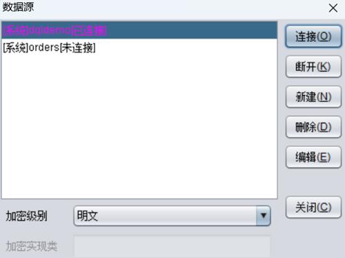 打开DQL元数据层设计器,在菜单栏中通过系统 - 数据源或者点击