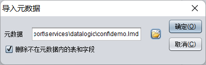 如果选择了选项删除不在元数据内的表和字段,则字典中已存在而元数据中不存在的表、字段项、维和定位项将被删除。