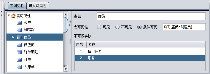 对于每个表,均可以设定为可见、不可见或者条件可见。