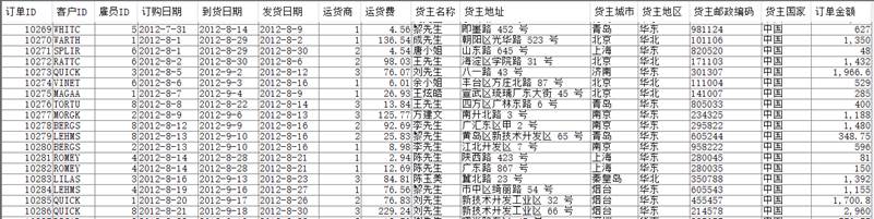 A2:从订单表中查询出"雇员ID"、"货主地区""和"订单金额",结果返回成序表。A2的结果如下图: