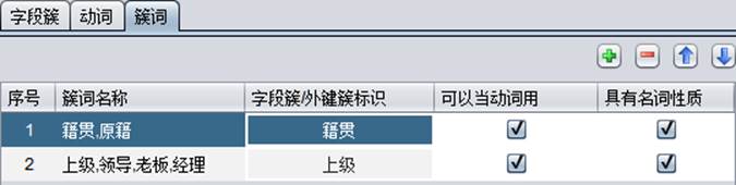 如果簇词本身是动词,那么也可以勾选可以当动词用,这样相当于把它设为右动词,即把它的左簇设为簇词所对应的字段簇。这和在动词中添加一个同名的动词效果是类似的,但可以避免重名的词太多。