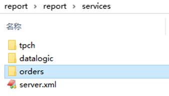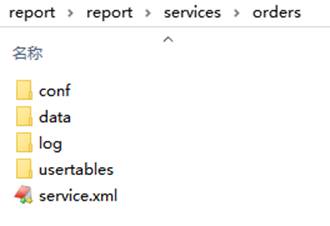 这里配置了三个服务,这在前面DQL服务器的启动界面中也可以看到每个服务注册成功的提示。每个服务对应路径中的一个文件夹,以orders服务为例: