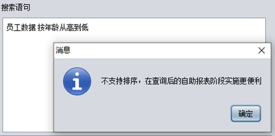 如果查询语句中出现了非法词,则会在查询时报错,并弹出设置的提示信息:
