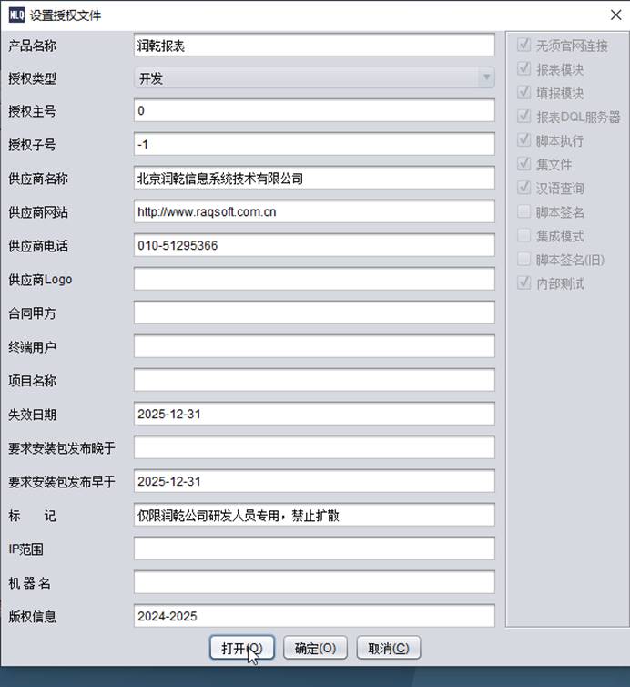 首先需要设置授权文件,选择工具 - 选项,在授权文件名称右侧选择设置: