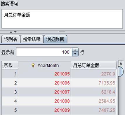 比较常规的汇总不一定非用指标计算,“月总订单金额”这个指标,也可以用下面的搜索语句计算: