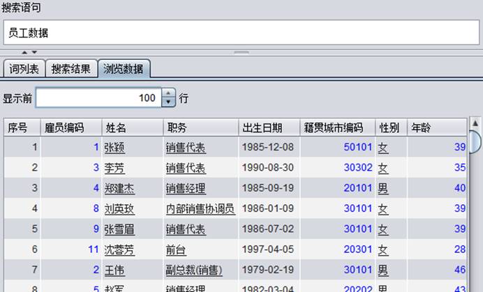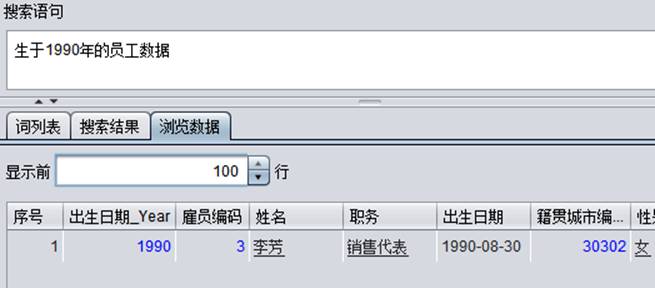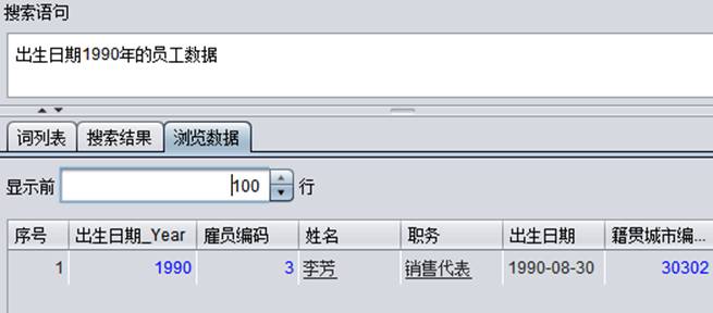 通过簇词生于,可以用字段簇出生日期执行匹配来查询。