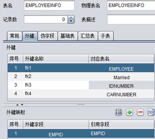 EMPLOYEEINFO表的主键是和EMPLOYEE一对一关联的,在元数据中,EMPLOYEEINFO的主键与EMPLOYEEINFO的主键关联:
