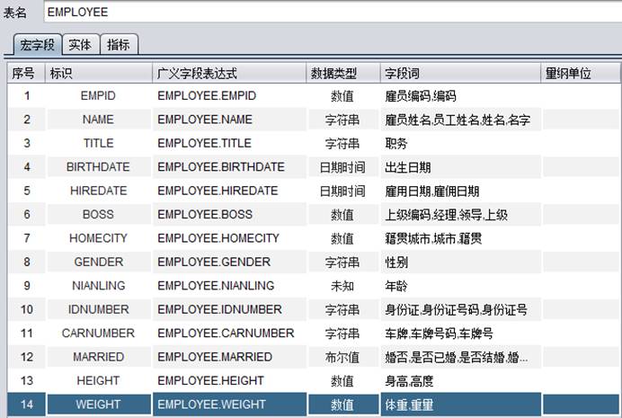 从元数据中,再引入一个表EMPLOYEEINFO到汉语查询的词典中: