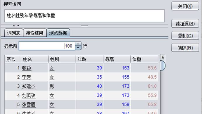 在前面的例子中可以发现,当搜索语句中,使用维词或者单位匹配查询,而未指定字段词时,返回的结果中,将使用宏字段的标识作为列名,因此为了结果更具有可读性,需要将宏字段的标识也修改为中文,如: