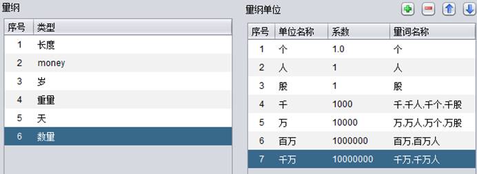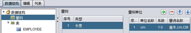 量纲是所有表通用的,在一个类型的量纲中,可以定义多个单位,每个单位可以定义多个量词名称,这里把厘米作为基本单位,它的系数是1.0。