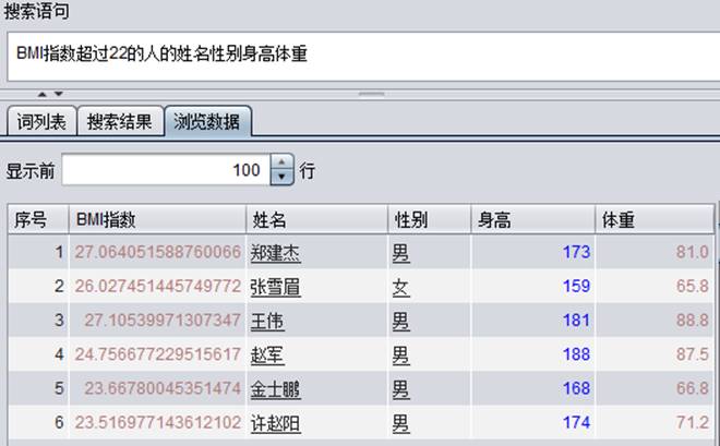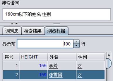 在这里,虽然没有指明160cm对应的字段词,但是使用cm单位的只有HEIGHT宏字段,查询时会自动匹配。查询时也可以使用同一类型量纲中的不同单位,如: