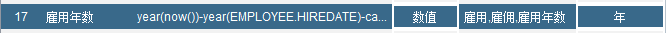 year(now())-year(EMPLOYEE.HIREDATE)-case when month(now())*100+day(now())<month(HIREDATE)*100+day(HIREDATE) THEN 1 ELSE 0 END