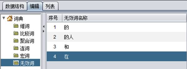 这是由于口语化语句中的一些词,与关键信息无关,对于数据查询是无效的,为了使得这种情况下的语句能够正常识别,需要设置无效词。如在词典项中设置无效词如下: