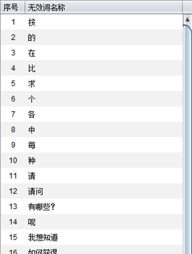 为了适应各种口语化的语句,可能需要设置很多无效词。如: