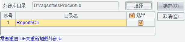此时点击选择按钮选择外部库所在的目录,点击【确定】,重启IDE后生效。